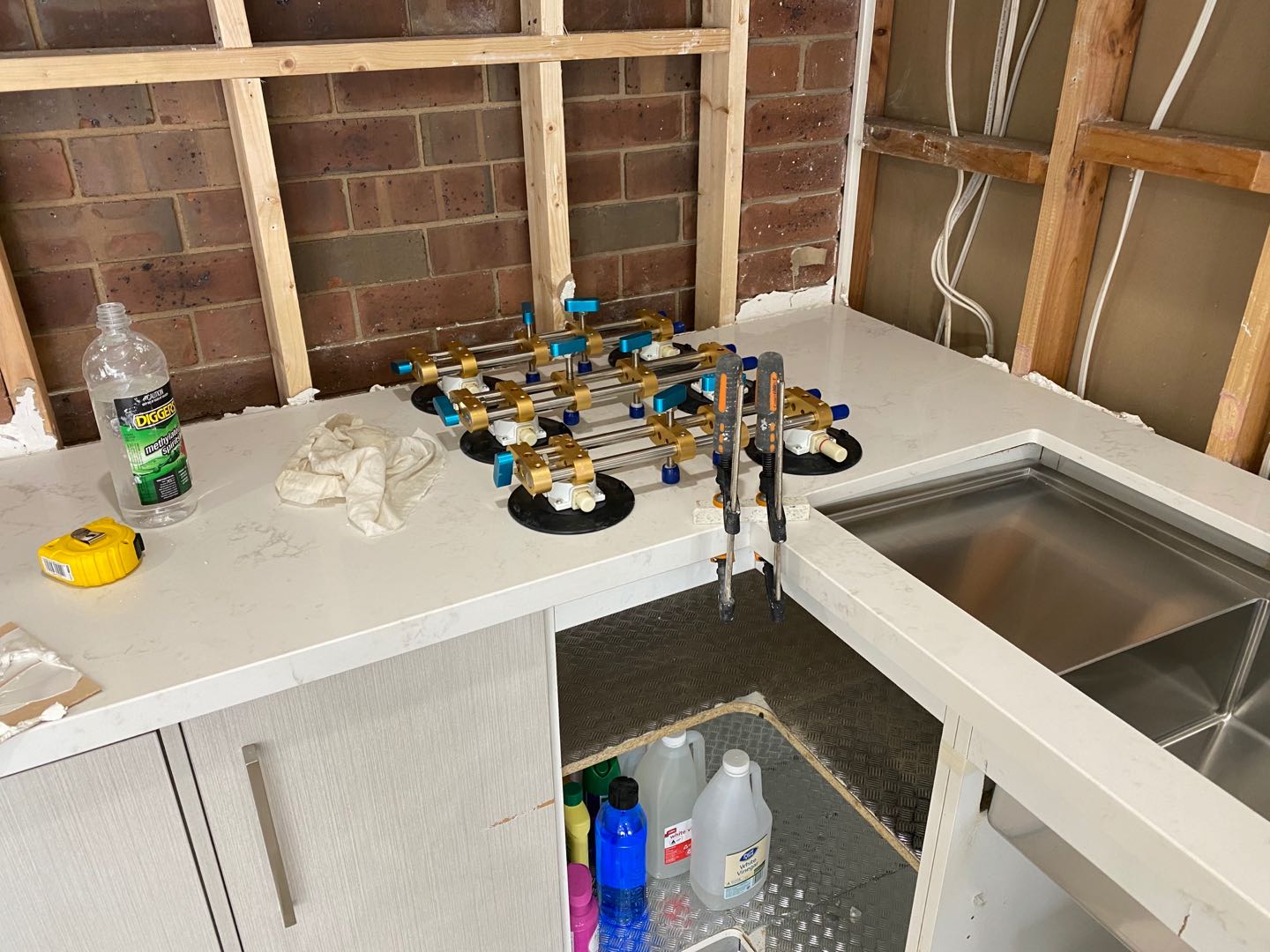 是廚房臺面平面拼接的輔助工具,拼接后臺面平整無縫